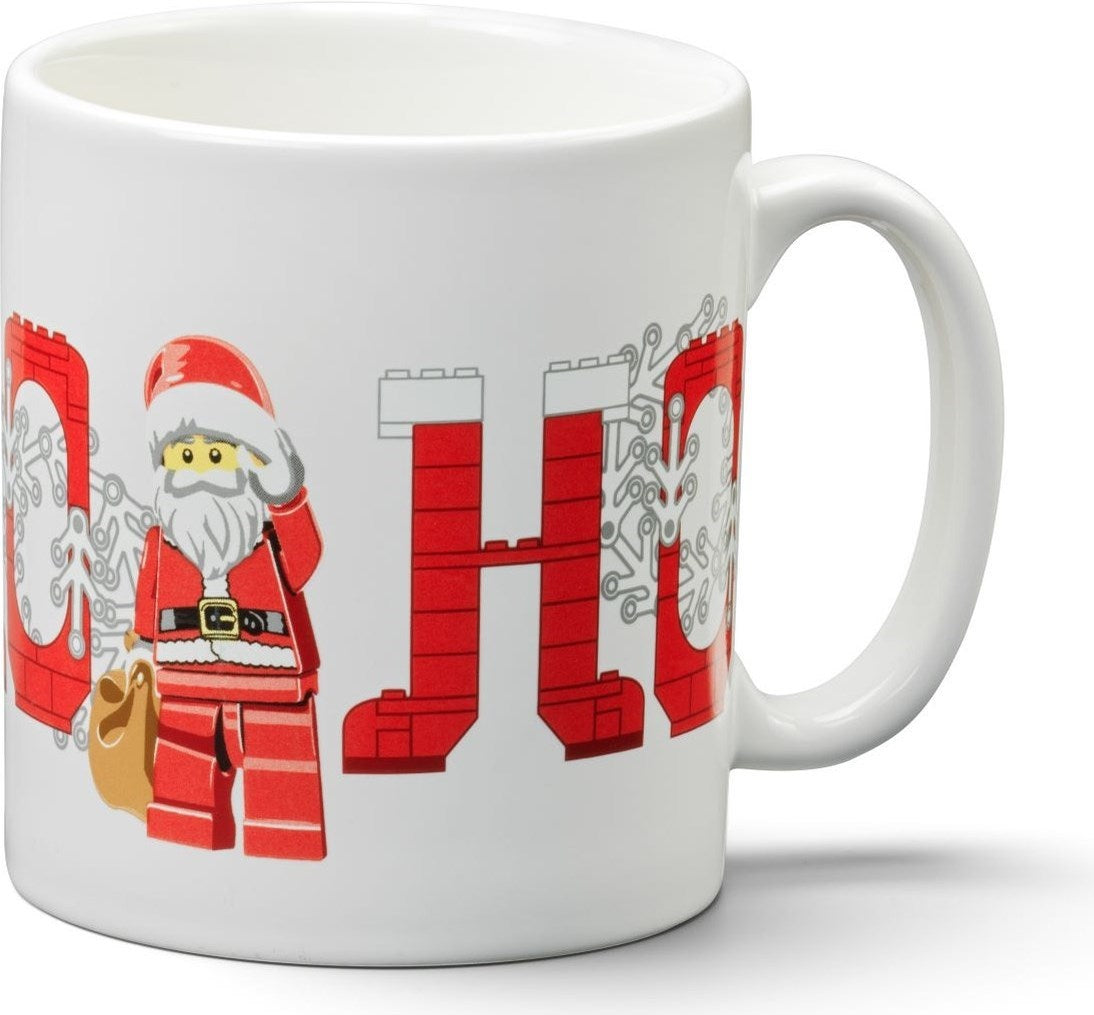 - LEGO® julekrus – drikkekoppen rommer 300 ml og skaper ekstra LEGO julemoro i drikkepausen. Den er dekorert med en julenisse-minifigur og et «Ho, ho, ho»-motiv