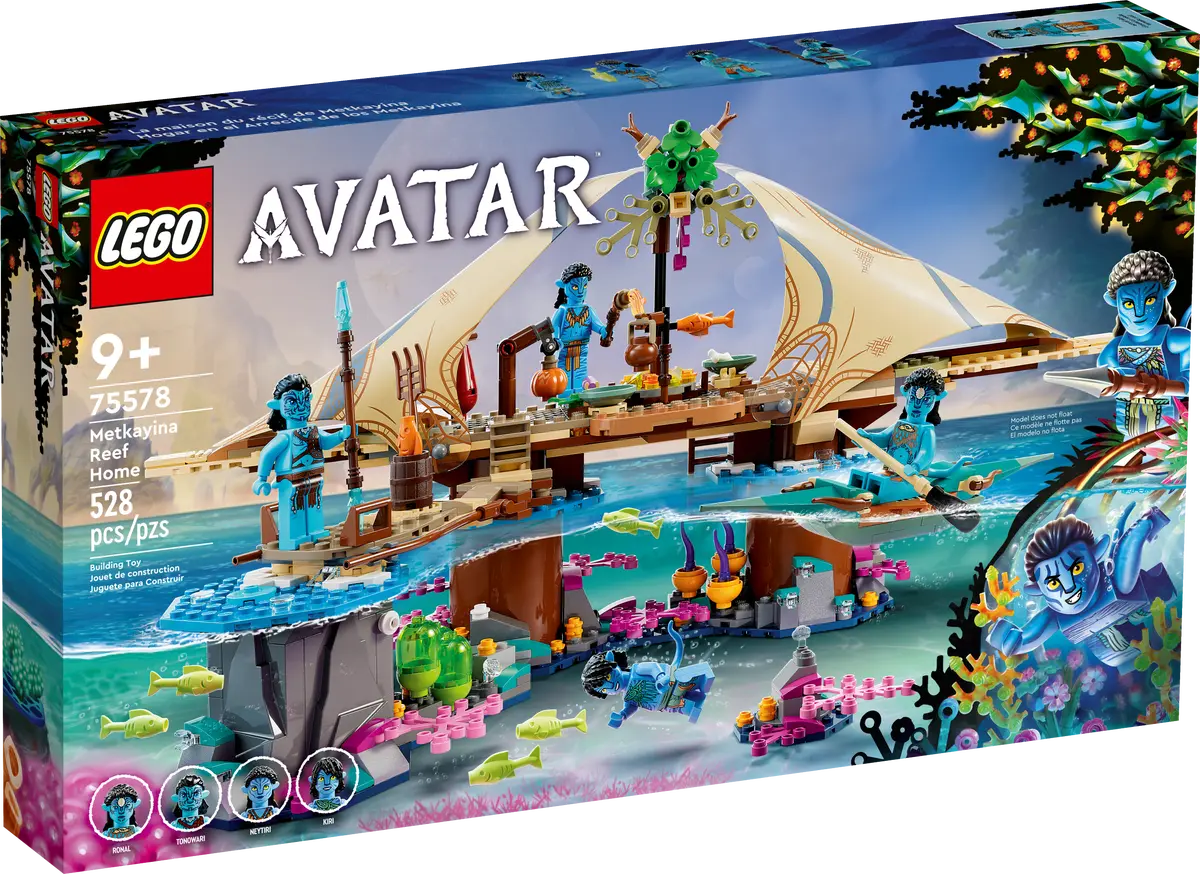 Dra ut i rommet til månen Pandora. Bli med Neytiri, Kiri, Ronal og Tonowari til Metkayina-landsbyen, som ligger ved Pandoras korallrev, hengende fra månens enorme, mangrove-lignende trær. Padle Metkayina-kanoen for å utforske de fargerike korallene. Gjenskap favorittscenene dine fra filmene og finn på dine egne fortellinger med dette vakre LEGO® Avatar settet.
