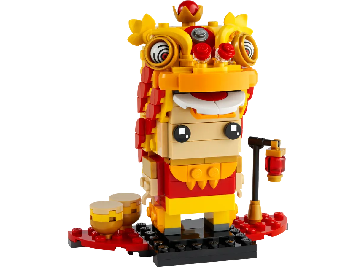 Feir kinesisk nyttår med den morsomme LEGO® BrickHeadz™ løvedansmann. Denne fargerike, dekorerte modellen er inspirert av den tradisjonelle kinesiske løvedansen, og inneholder en bevegelig munn for å endre ansiktsuttrykket til løven. Modellen inneholder også to trommer og en rød lykt og kan plasseres på basisplaten, eller barn fra ti år og oppover kan leke med den.