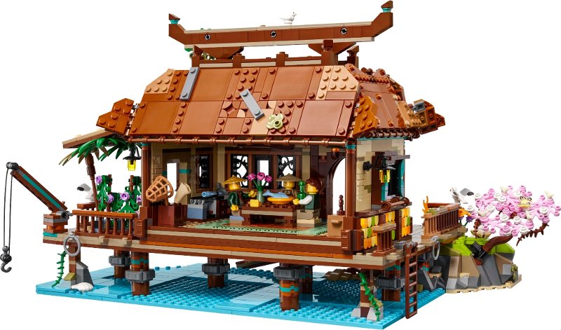 Drøm deg bort ved dette nydelige huset som står på stylter i havet. Nydelige farger og en rolig og avslappet stemning omringer dette huset, og gjør det til en flott byggeopplevelse og en nydelig utstillingsmodell.