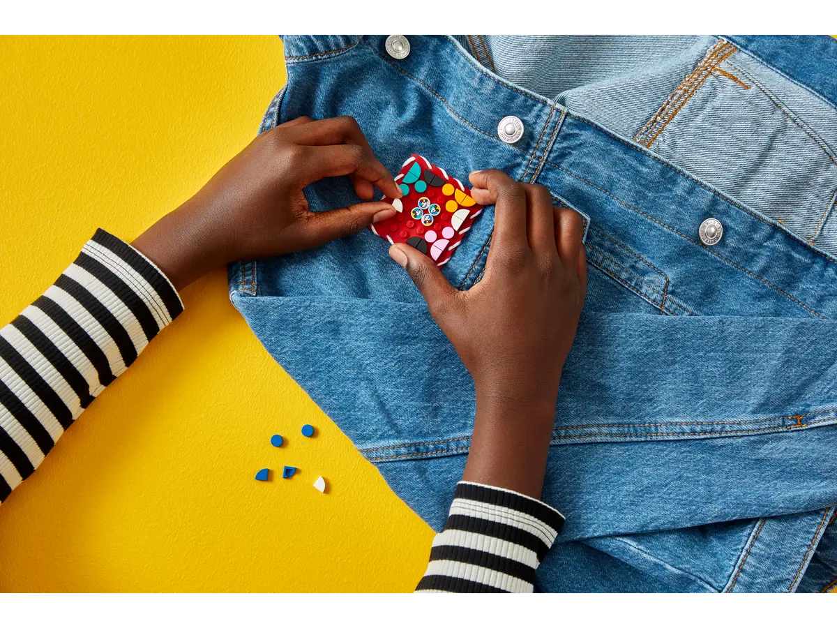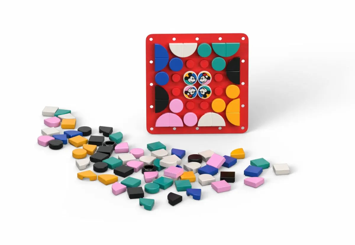 Kjenner du barn som er interessert i hobbysett, Disney-figurer og design? Da kan du glede dem med dette gøyale LEGO® DOTS settet som kan sys på klær eller en sekk! Dette kreative settet inneholder et bøyelig 6 x 6-merke i rødt samt mange fliser i sterke farger, samt fliser dekorert med Mikke og Minni Mus fra Disney. Selve merket er 5x5 cm i størrelse.