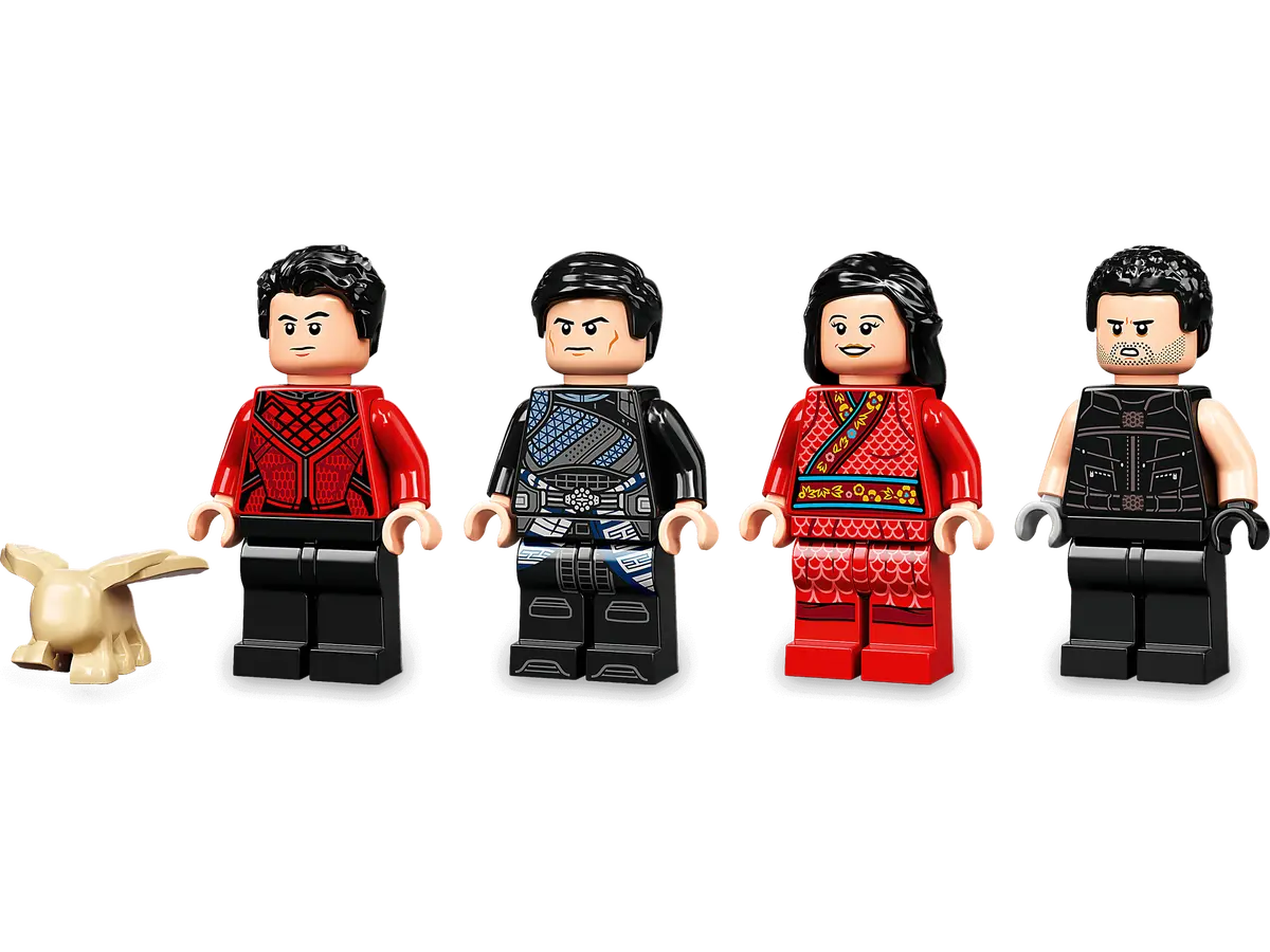 Barn kan leke og rollespille spennende eventyr med de kule figurene Shang-Chi, Katy og Morris fra Marvel Studios’ film Shang-Chi and the Legend of the Ten Rings. Her får de spennende motorsykkel- og biljakter, et arsenal av våpen og muligheten til å slåss mot Wenwu, lederen for de ti ringene, og lakeien hans, Razor Fist. De er utstyrt med diskskyter og en 1x4 fjærbelastet skyter som skyter «piler» mot alle motstandere. LEGO byggeleker er som skapt for å iscenesette spennende Marvel-eventyr – og med dette settet får barn actionfylt superheltlek!