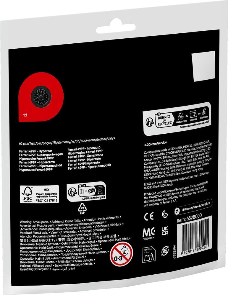 Ferrari-fans og barn fra sju år kan bygge, stille ut og arrangere billøp med denne klossemodellen i miniatyr av den berømte hyperbilen Ferrari 499P.