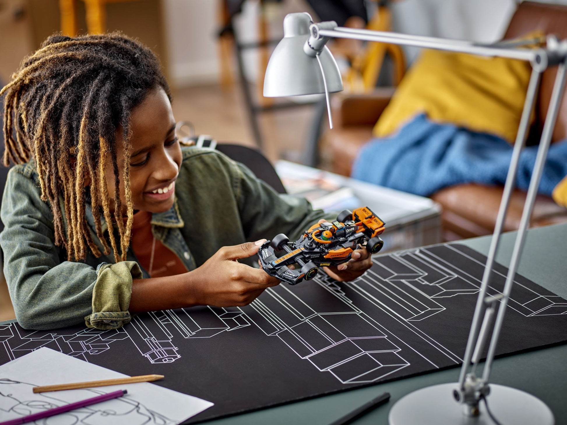 McLaren kjøretøymodellen har mange realistiske detaljer: svart og oransje lakkering, logoer til teamsponsorene, dekk med Pirelli-trykk og oransje halo-bøyle. Det byggbare bilsettet inkluderer også en sjåførminifigur, som man kan late som er Lando Norris eller Oscar Piastri, som barn kan plassere i førersetet og bruke i fartsfylte løp.