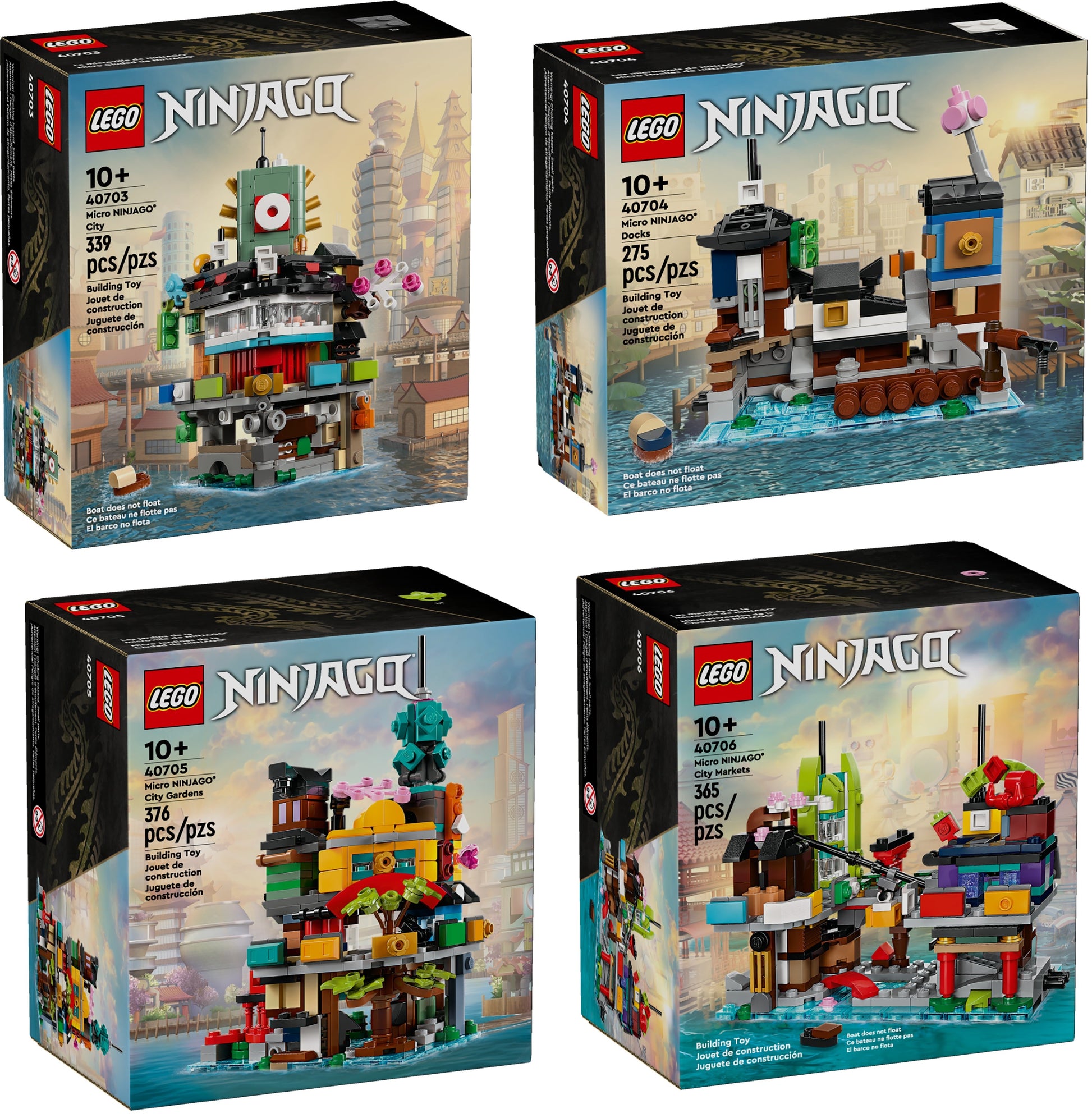 - Navn: Micro NINJAGO City, Micro NINJAGO Docks, Micro NINJAGO City Gardens, Micro NINJAGO City Markets